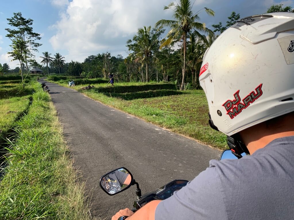 Wir sind mit dem Moped unterwegs und kehren bei Burkit Artha ein. Er betreibt ein kleines Restaurant und zwei Bungalows mitten im Reisfeld, die er an Touristen vermietet. Als wir eintreffen, sind wir die einzigen Gäste. Und es sieht so aus, als würden wir ihn überraschen.