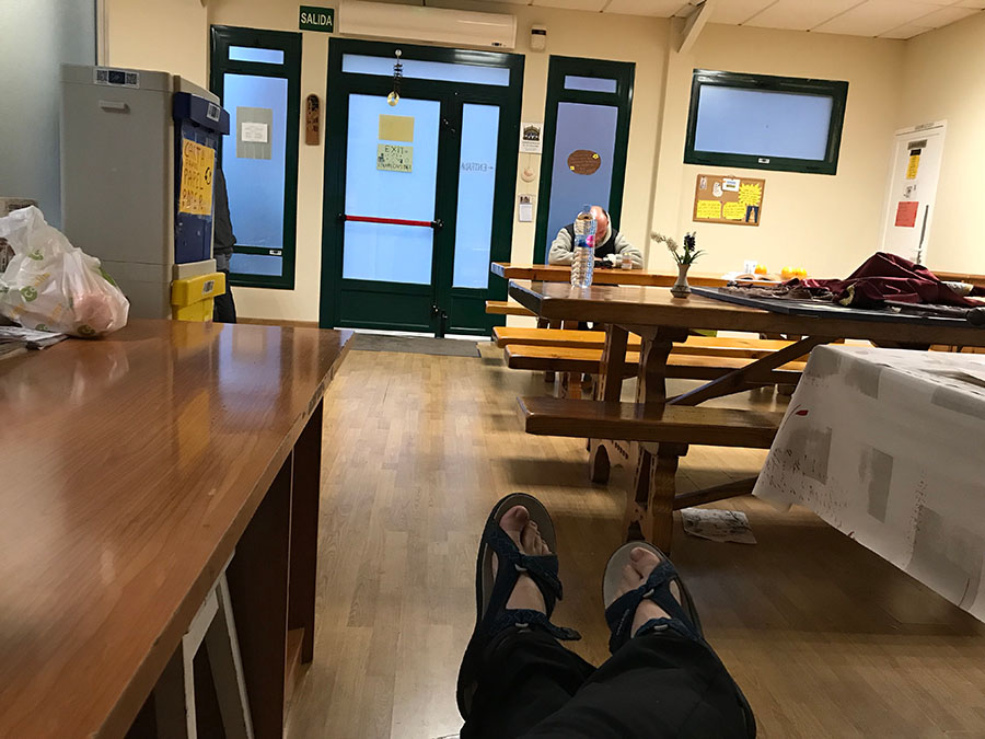 Jedenfalls – nennen wir ihn Werner – ist ein deutscher freiwilliger Hospitalero, der nunja, sich selber gerne reden hört und stets irgendwie neugierig oder auch schleimig um die Betten schleicht. Außerdem ist es kalt. Wirklich kalt. Habe heute eine Pilgerkrise und geh daher jetzt in die 90-Betten-Turnhalle in mein Bett. Jetzt weiß ich, wie sich die Flüchtlinge in Sachsen fühlen müssen. Apropos Sachsen: Zwei davon sind auch hier, verhalten sich aber ruhig.